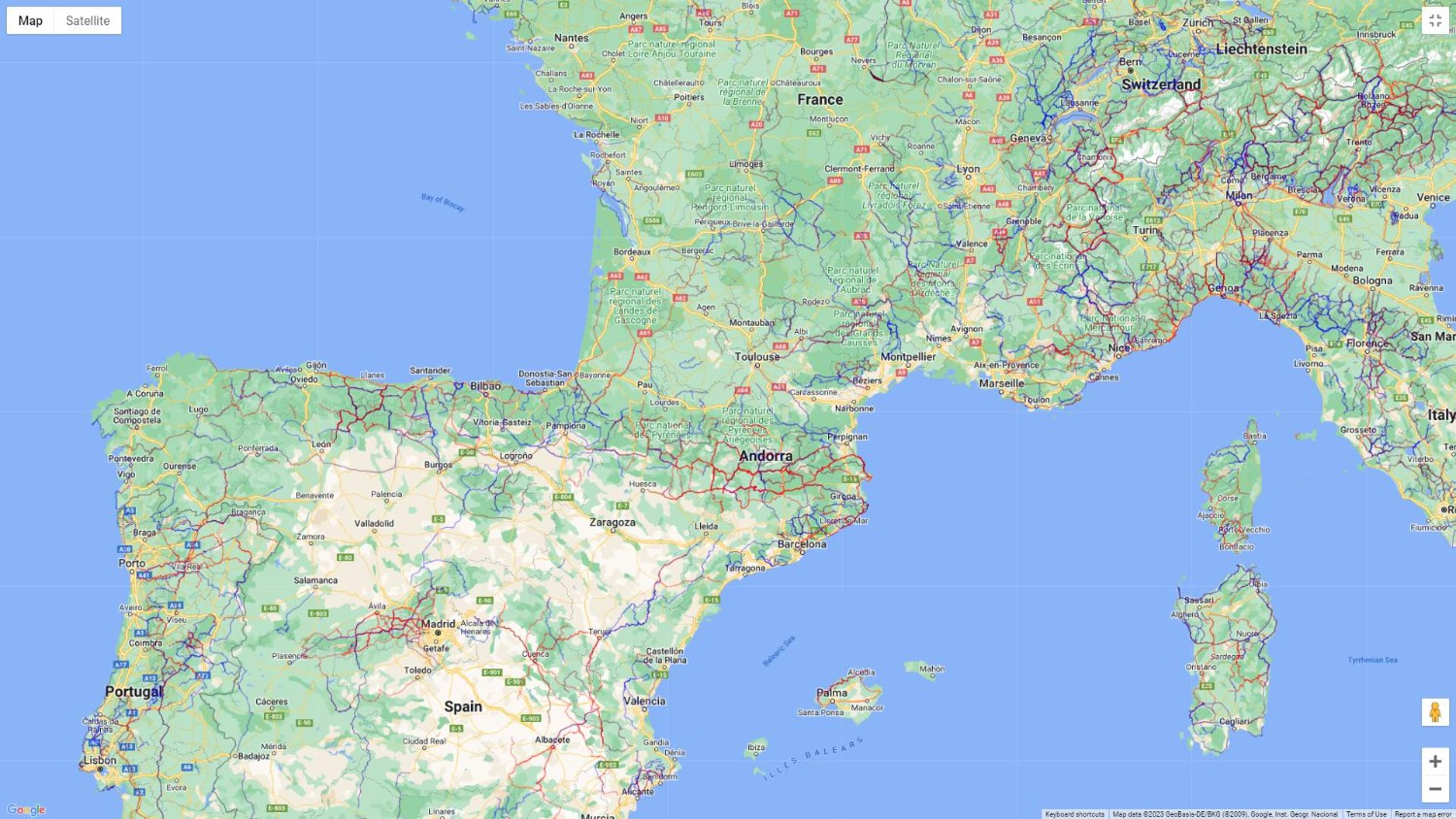 I have now spent 2 hrs trying to make a route from Basel to the Algarve in Portugual. The problem I have is that it is not possible to see the routes on the map. I have selected the countries correctly. The thin red line indicating a route is mixed up with yellow and other lines on the map. I use a Macbook and Safari web browser. I have also tried with Google Crome browser, but no improvement. For me the trip planner is of no use when I cant see the BBR routes on the map. If I select a specific route from the meny (outside trip planner) and view it on the map, the line font is much thicker and it is easy to see the route. But in the Trip Planner the font is very thin and it is very difficult to distinguish the routes from other roads, rivers, etc on the map. Can this be improved? Is there any adjustment I can do myself to make the routes more visible in Trip Planner mode?
